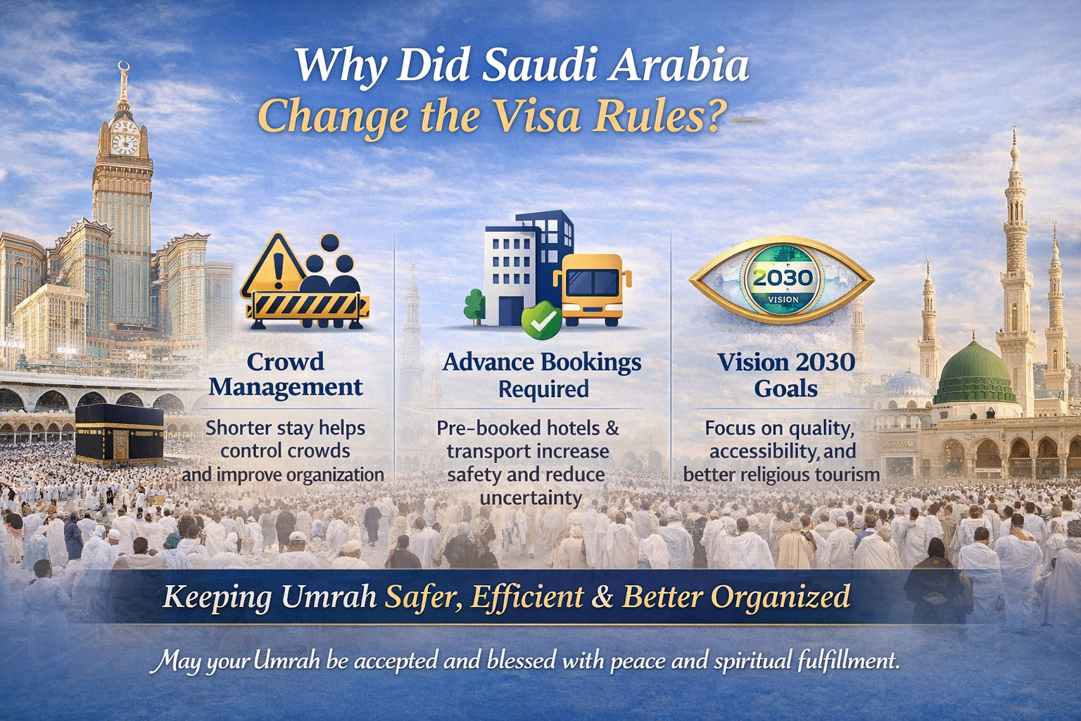 Several factors contributed to this change. First, the large number of pilgrims visiting Makkah throughout the year creates challenges in crowd management. By shortening the visa duration, Saudi authorities can ensure pilgrims spend less time in the country, allowing better organization and smoother logistics.